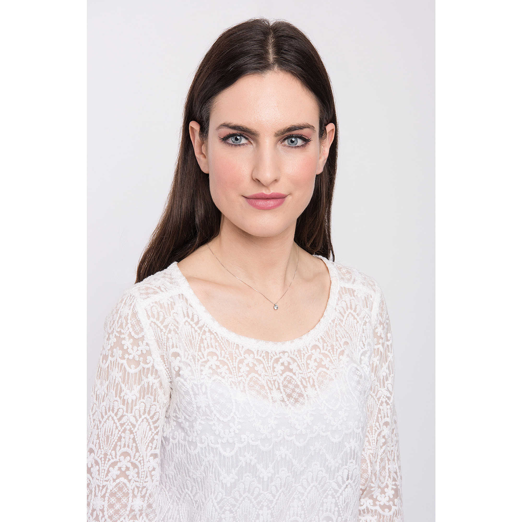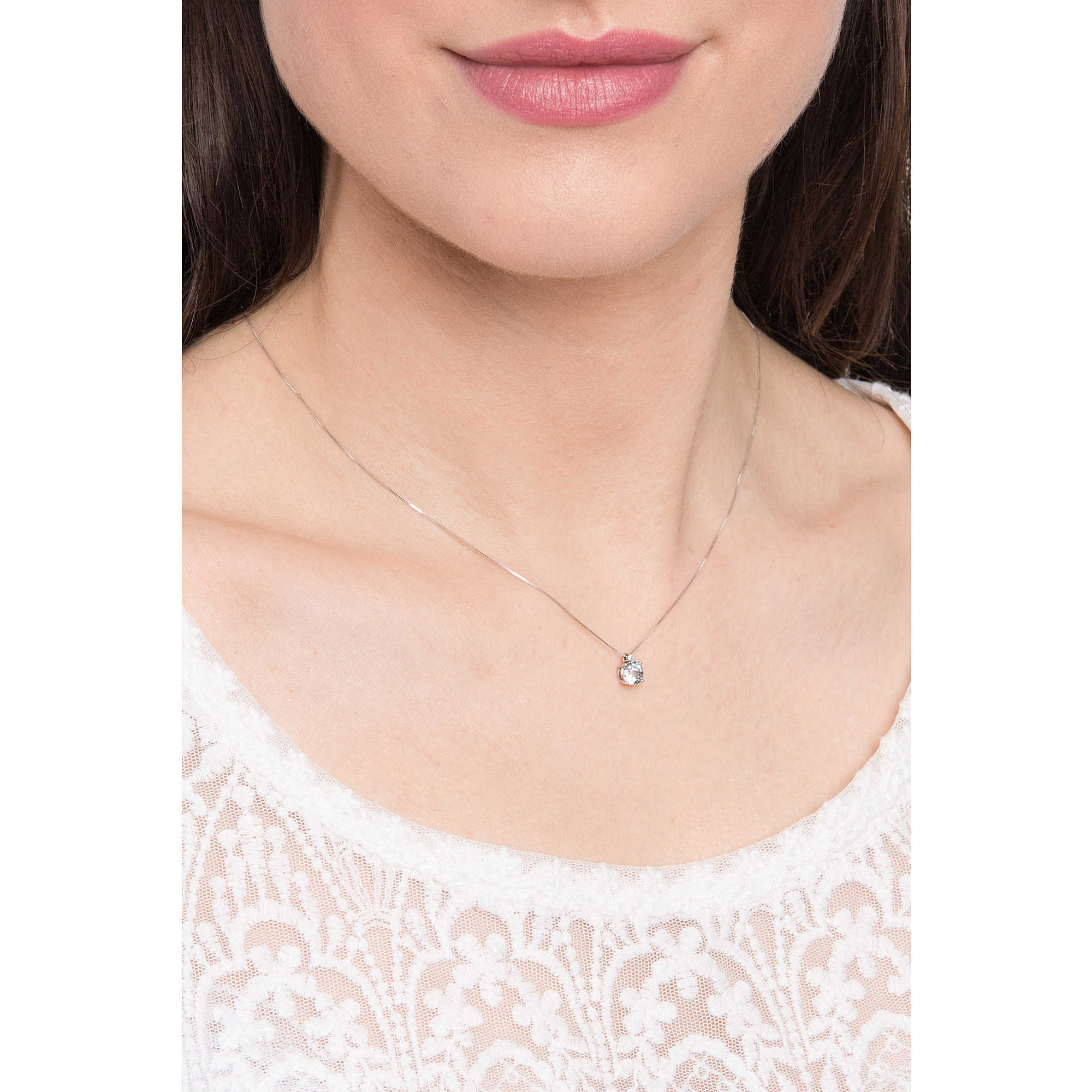 Collana da donna di Comete della collezione storia di luce. Girocollo in oro 750 ‰ con diamanti p. Ct 1, colore g e purezza si e acquamarina di diametro 5 e di caratura 0,39. La referenza è glb 1383